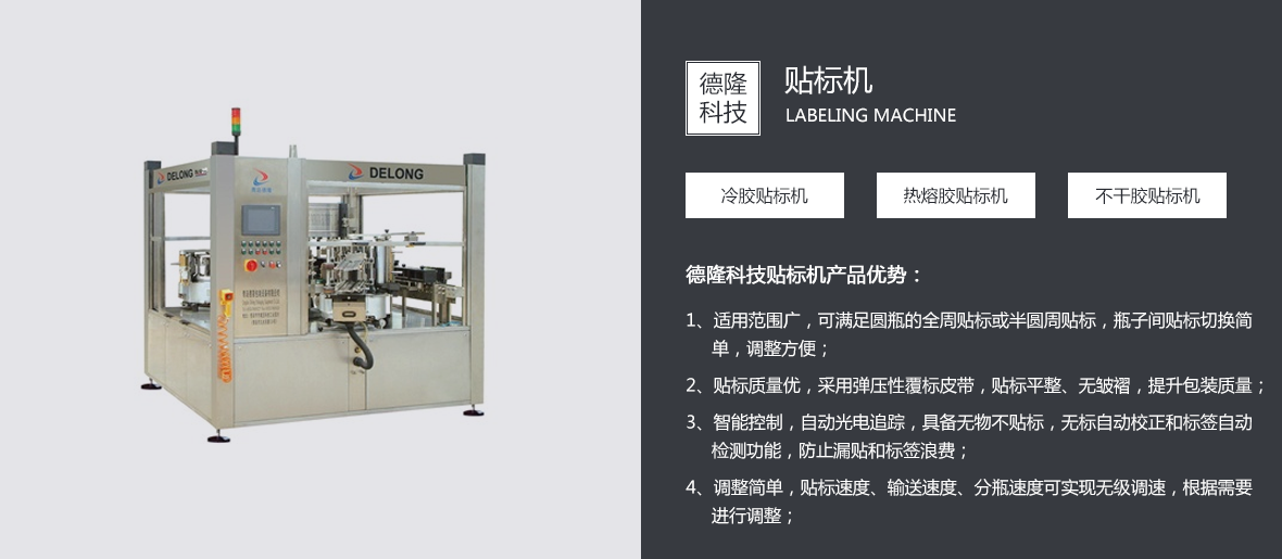 青島德隆自1995年創(chuàng)建以來,始終秉承創(chuàng)新與發(fā)展的優(yōu)良傳統(tǒng),依靠技術(shù)與服務(wù)贏得客戶的信賴與尊重。在貼標(biāo)機向?qū)W⒒⒍嘈袠I(yè)領(lǐng)域發(fā)展并成就了中國異型瓶貼標(biāo)市場的經(jīng)典之后,應(yīng)市場不斷變化的客戶需求,優(yōu)化產(chǎn)品結(jié)構(gòu),引進(jìn)吸收國內(nèi)外的流體包裝設(shè)備理念,在貼標(biāo)機專業(yè)化地位穩(wěn)固的前提下,逐步實現(xiàn)關(guān)聯(lián)產(chǎn)品的多元化。   目前,青島德隆已經(jīng)成為國內(nèi)能同時滿足圓瓶、方瓶、扁瓶、錐度瓶、球形瓶、定位瓶等瓶型的高、中、低速多功能冷(熱)膠貼標(biāo)領(lǐng)域的廠家。隨著碼/卸(瓶/罐)垛機、沖瓶機、灌裝擠(旋/壓)蓋機、全自動紙箱包箱設(shè)備、排序機、機器人碼/卸垛設(shè)備、激光噴碼機的運行成功,一個真正的流體包裝設(shè)備方案解決專家已經(jīng)成熟。   青島德隆集團的···......[查看詳情]
